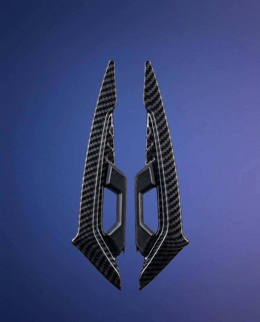 High-quality Carbon Finish Helmet Wings designed to give your motorcycle helmet a sporty and aggressive look.